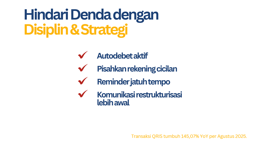 - Jika arus kas seret, hubungi lembaga pembiayaan segera untuk opsi restrukturisasi atau penjadwalan ulang lebih murah daripada denda berlarut.