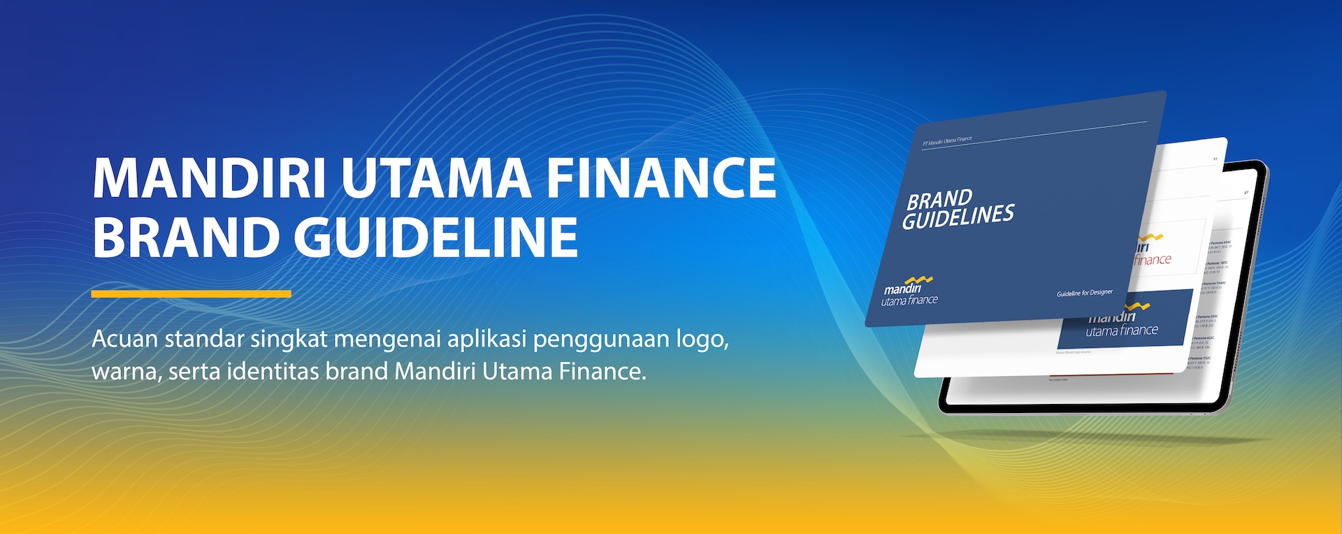 Warna Mandiri Utama Finance membantu untuk membangun kesadaran dan asosiasi pada Brand. Mandiri Pantone Blue 654C adalah warna utama yang harus digunakan secara dominan diikuti aksen Pantone Yellow 7549C dan Pantone Red 187C.